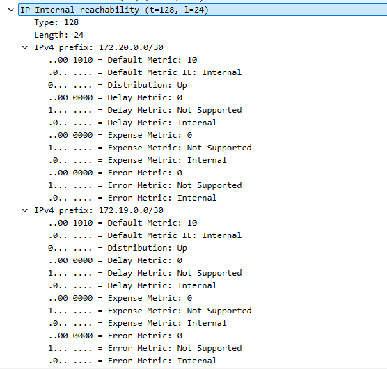 When the R1-R2 cable was first connected, R1 sent an LSP to T informing the flooding domain of the new neighborship with R2, and the subnet of the R1-R2 link, shown below. R2 floods a similar LSP to inform the network about its new neighbor and IP network.